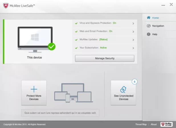 - Protección contra malware y virus: McAfee LiveSafe ofrece una defensa robusta contra virus, malware, spyware, ransomware y otros tipos de amenazas en línea.