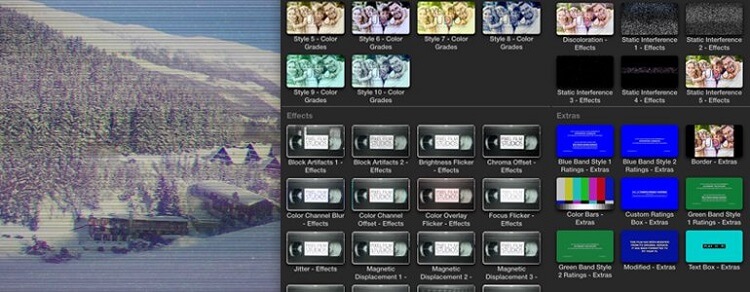 Una vez instalado junto a Final Cut Pro X, contaremos con más de 20 efectos de distorsión de vídeo, 10 graduaciones de color, bandas de colores e interferencias estáticas.